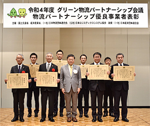 Suzuyo Co., Ltd. and six other companies jointly received the highest award, the Minister of Land, Infrastructure, Transport and Tourism Award, at the "FY2022 Green Logistics Partnership Excellent Company Award" for their efforts in collaborative transportation. By setting up relay points in the long-distance transportation section and combining driver switches and ferry transportation to the relay points, they were able to improve the working environment for drivers. In addition, it is expected that the reduction in the number of vehicles used will lead to a reduction in CO2 emissions of approximately 299 tons annually compared to the conventional method.
