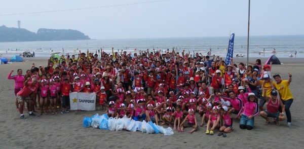 当日は、サッポログループの従業員とその家族も含め141名が参加し、地元で活動するライフセーバー、ジュニアライフセーバー、地域の皆さんと共に片瀬西浜海岸にて実施しました。