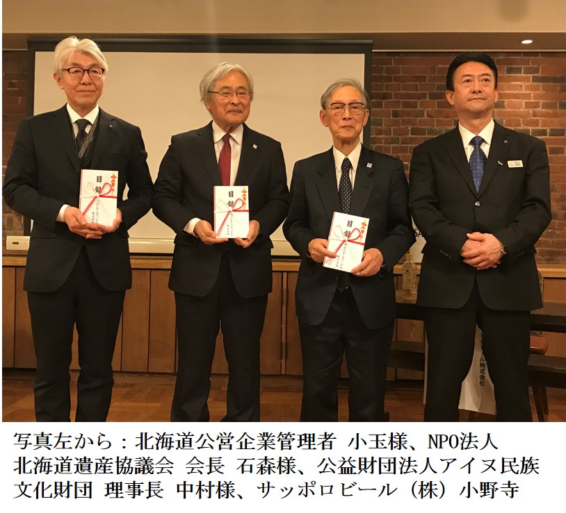 サッポロホールディングス(株)は、2019年7月6日、7月7日に開催された「サッポロビール☆道産子感謝Day」「札幌麦酒祭り」のビール売上金の一部を、北海道の地域振興のために、公益財団法人 アイヌ民族文化財団、NPO法人 北海道遺産協業会、北海道に寄付しました。