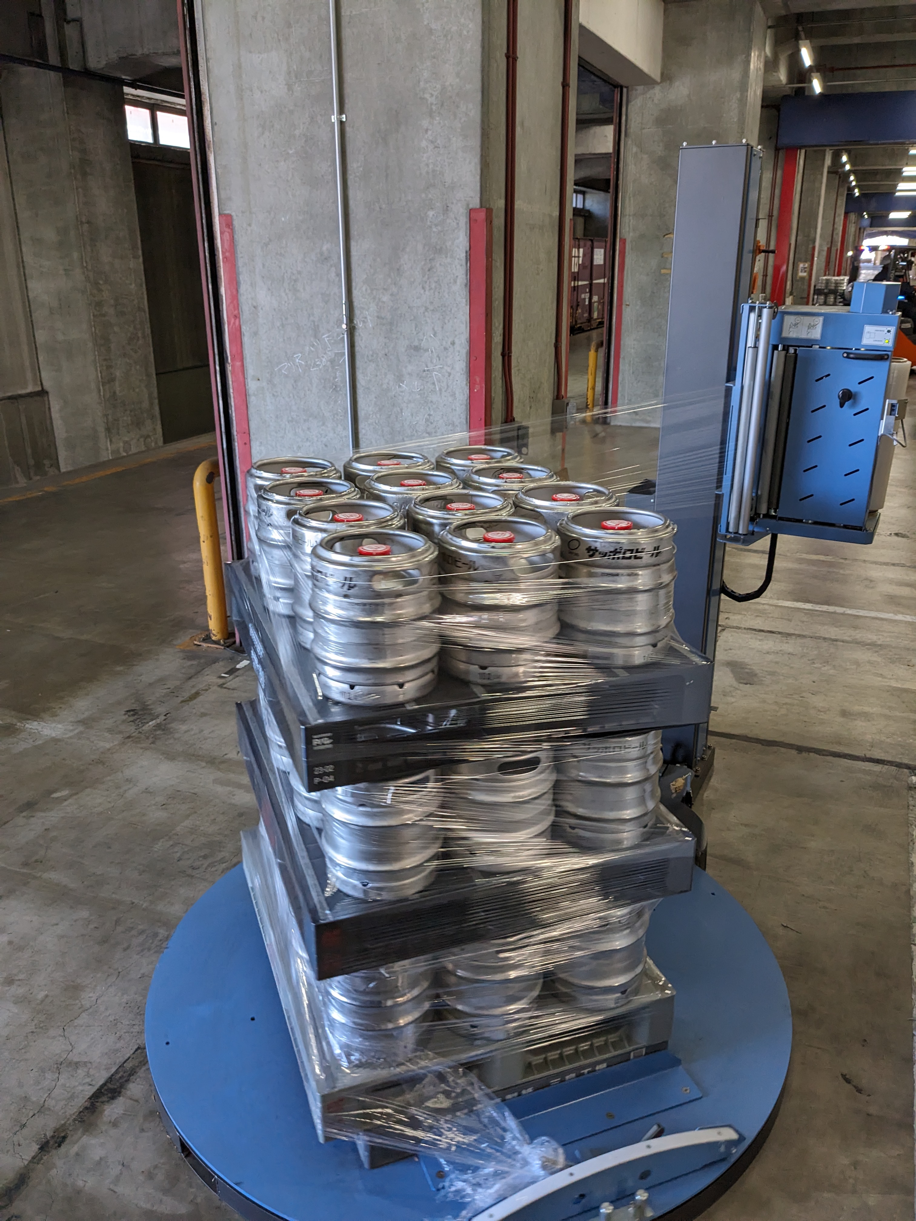 (注2)ストレッチフィルムを荷姿に合わせて自動で巻く機械。