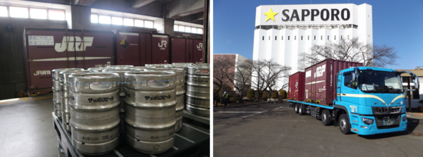 サッポログループのサッポログループ物流株式会社(代表取締役社長:田島 一孝、以下「サッポロ」)、日本貨物鉄道株式会社(代表取締役社長兼社長執行役員:犬飼 新、以下「JR貨物」)、日本運輸倉庫株式会社(代表取締役社長:柏井 省吾、以下「日倉」)、日本フレートライナー株式会社(代表取締役社長:峯 昭彦、以下「日本FL」)は、サッポロビール千葉工場からサッポロビール仙台工場内の仙台物流センターへの製品輸送の一部を、2月2日よりトラック輸送から鉄道輸送に切り替えます。