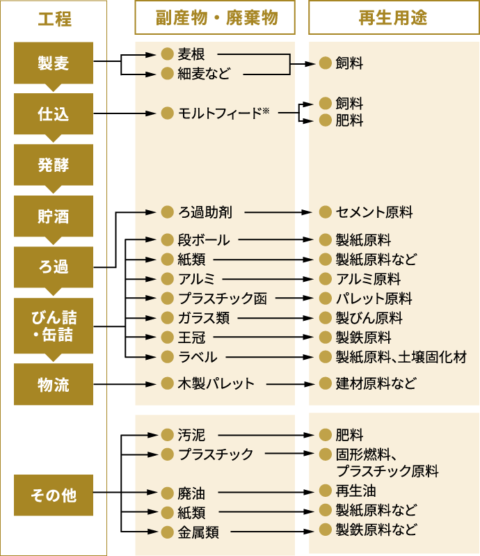 ビール製造工程で発生する副産物・廃棄物とその再生用途